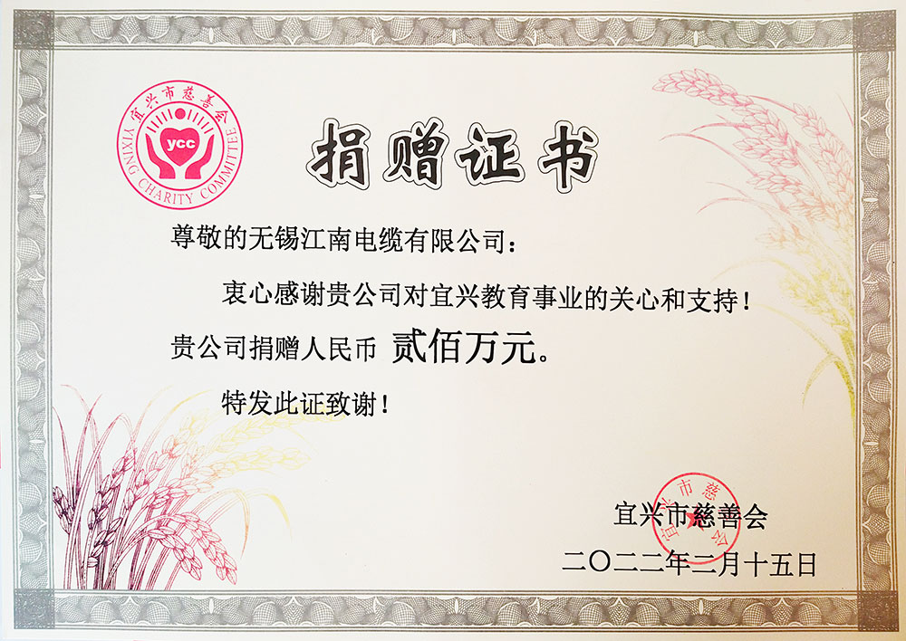 • 向宜兴市慈善会捐赠200万元——支持宜兴教育事业