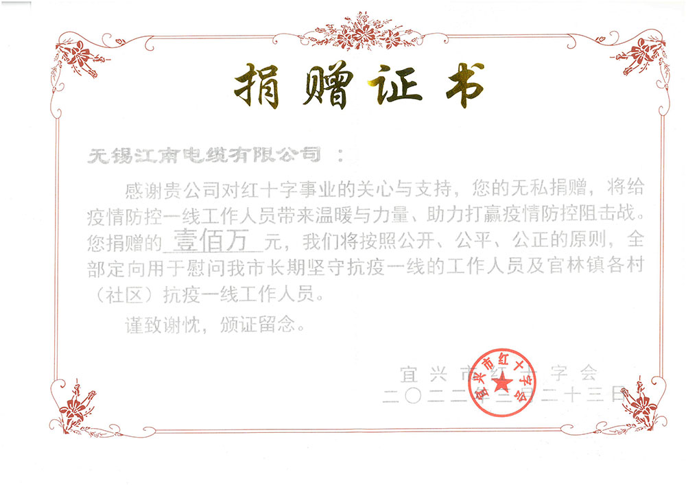 • 向宜兴红十字会捐赠100万—关心、关爱长期坚守抗疫一线工作人员