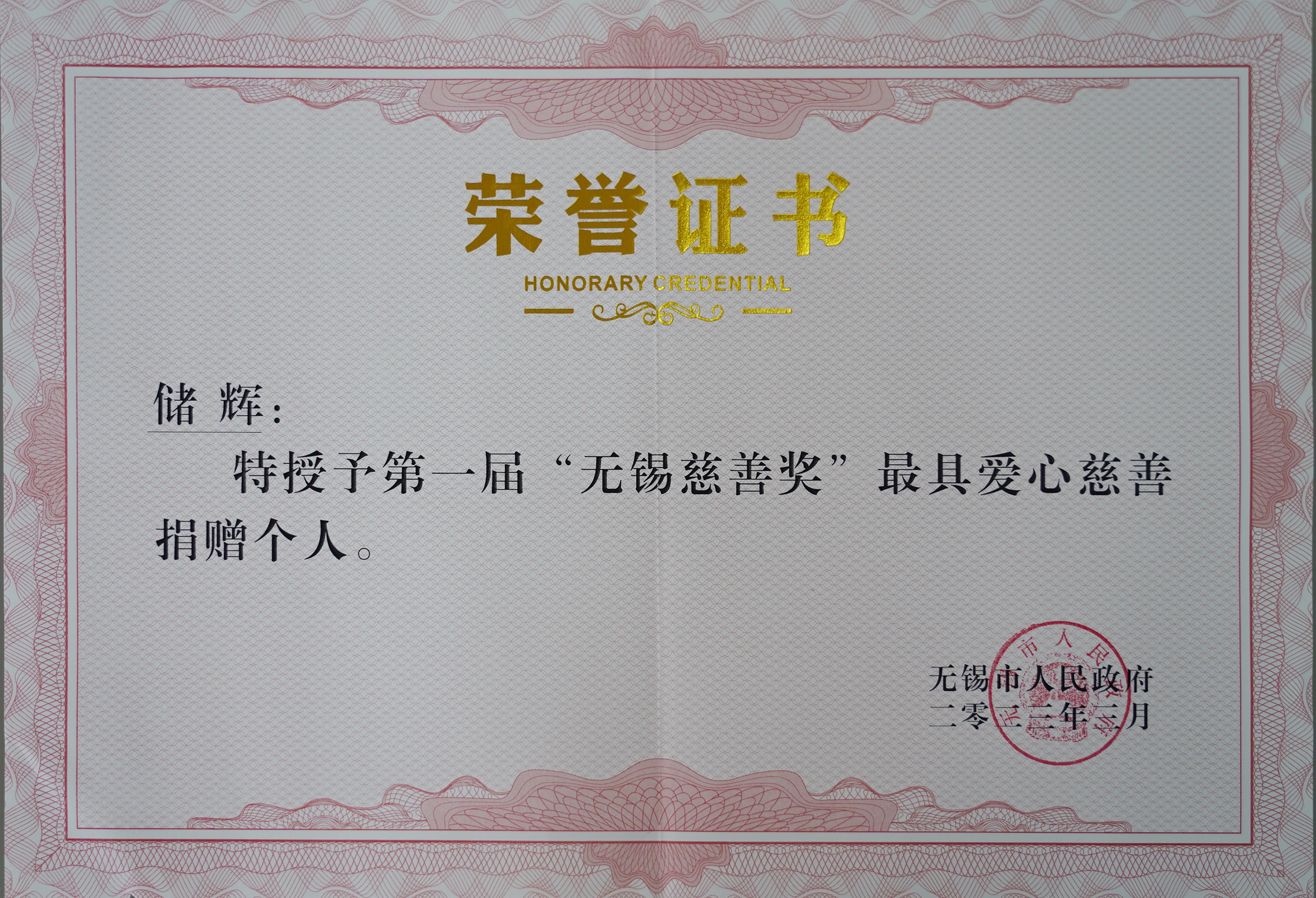 • 董事局主席储辉被无锡市人民政府授予“无锡慈善奖”最具爱心慈善捐赠个人