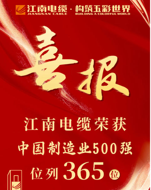 智造世界·创造美好2024世界制造业大会于9月20日在合肥召开,会上发布了“2024中国制造业企业500强”,江南电缆凭借雄厚的实力,荣获2024中国制造业企业500强,位列365位。为江南电缆点赞为中国制造喝彩🎉🎉🎉 -