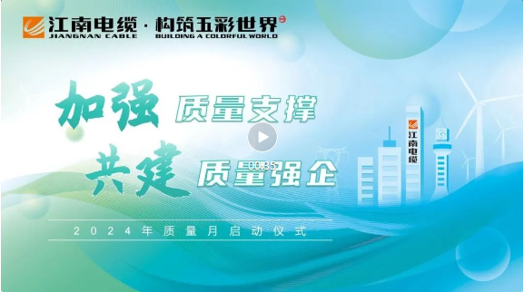加强质量支撑共建质量强企2024质量月启动仪式9月6日,江南电缆举行以“加强质量支撑·共建质量强企”为主题的质量月活动启动仪式。公司运营总经理蒋永卫、副总经理史文伟、副总经理曹顺康等领导,相关部门负责人及车… -