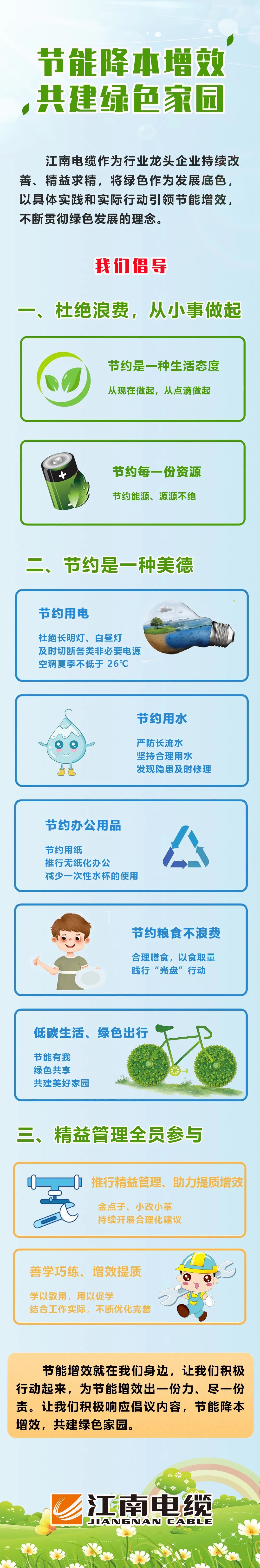 节能降本增效,需要全员立足本职齐参与,从细节入手,从小事做起,相信大家共同携手,一定能为江南电缆的发展做出自己的努力和贡献!