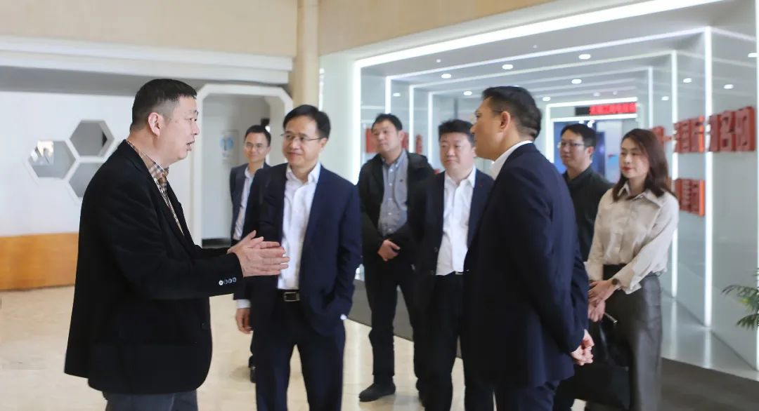 董事局主席储辉对来访领导表示热烈欢迎,并详细介绍了公司的生产经营情况。双方就企业信息化转型、智能制造等方面进行了深入交流。