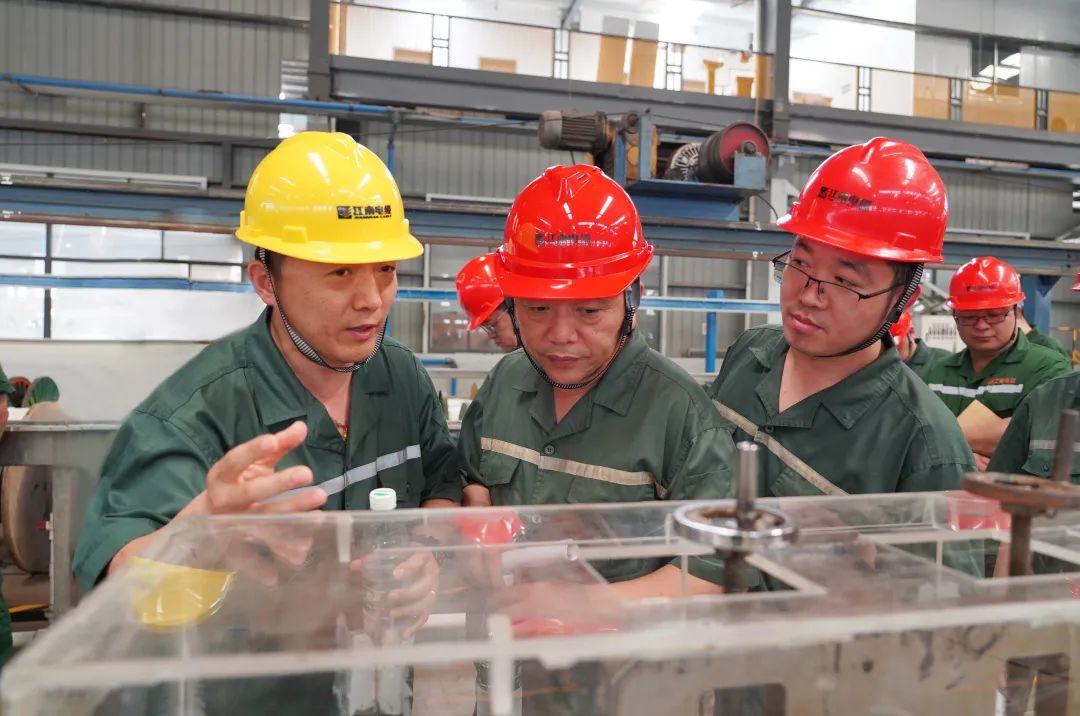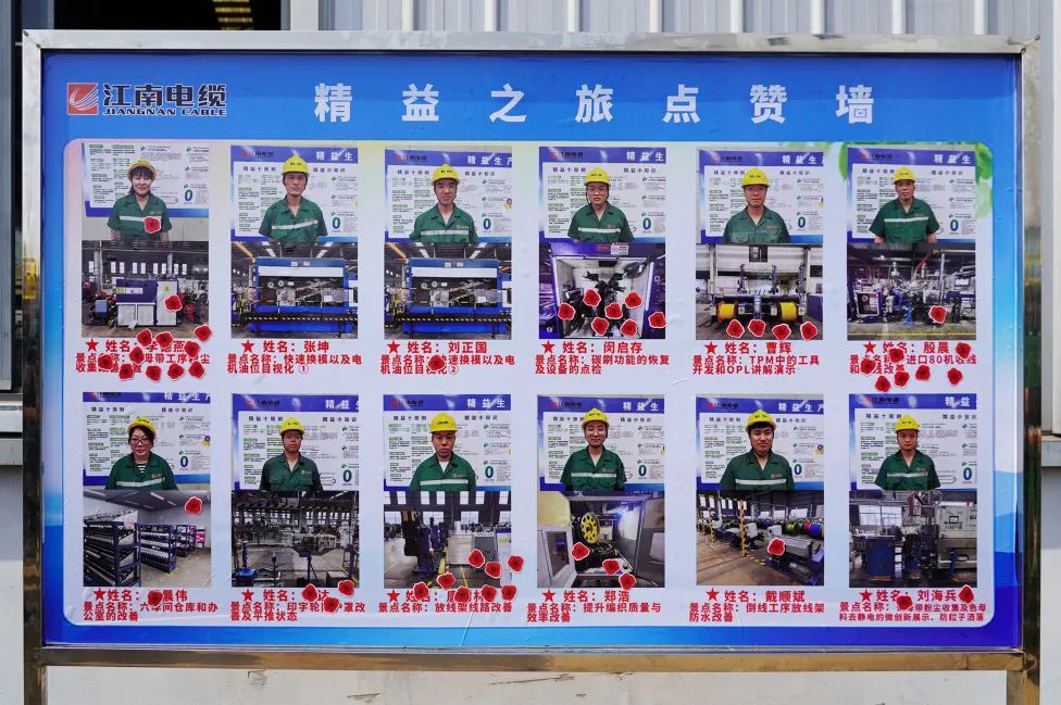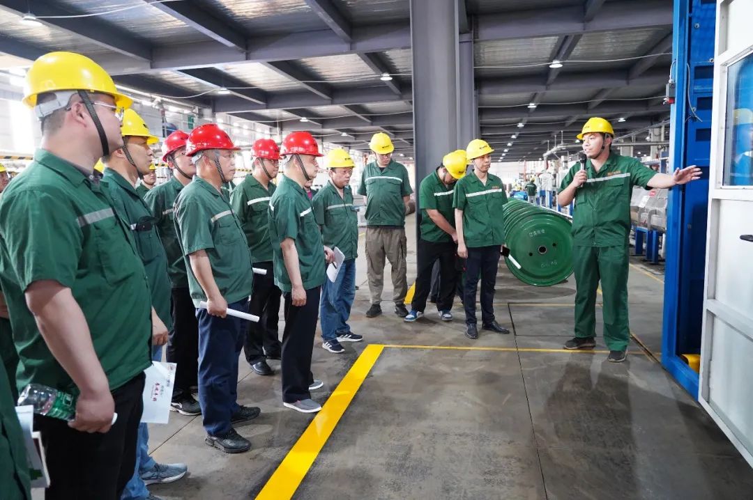 会前,轮值总经理蒋永卫带队参观了特缆分厂精益之旅改善成果案例展示,并在现场进行了交流点评。