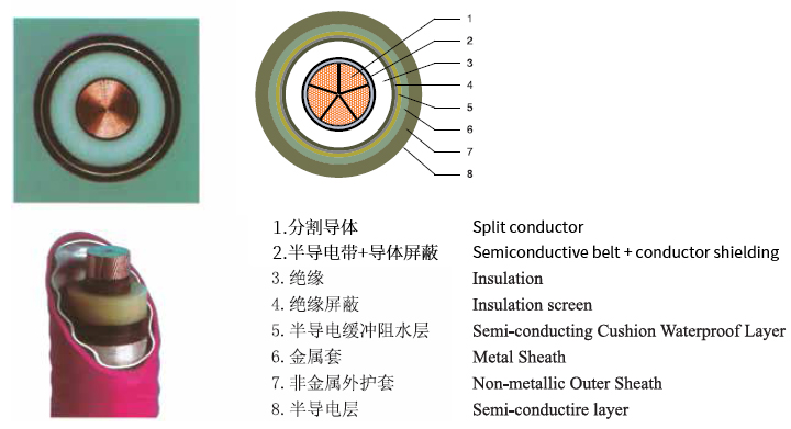 载流量计算假定条件:导体最高工作温度90℃;短路时最高温度250℃; 单回路,相间距为电缆直径+70mm; 环境温度为+35℃; 直埋土壤热阻1.0k·m/W;埋地深度1000mm; 护套接地方式:单点接地或交叉互联。 |