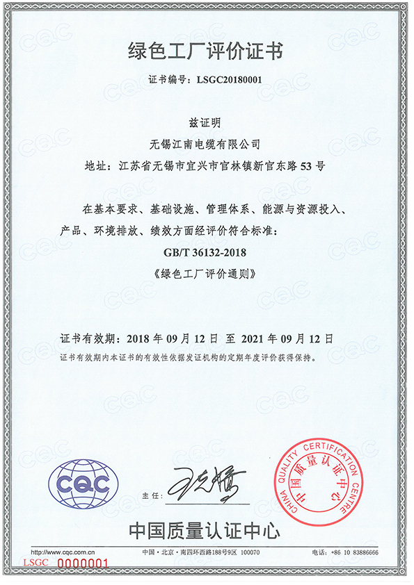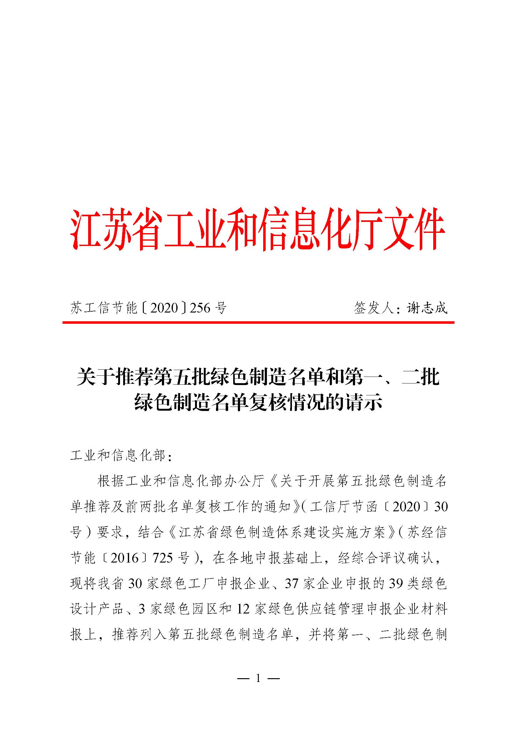 • Su Industry information Energy Conservation (2020) No. 256 (1) Green factory review passed
